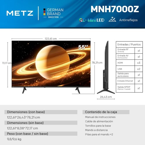 | Tamaño pantalla | 139,7 ccm - 55" |